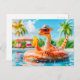 Postal Festiva Dino en la piscina con cóctel