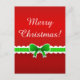 Hermosa postal vacacional con estampado rojo, lazo lacado verde y texto de personalizable.