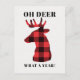 Esta graciosa tarjeta de Navidades dice OH DEER QUÉ AÑO alrededor de la cabeza de un ciervo con manchas de búfalo. El mensaje al revés dice DESEARTE FELICES VACACIONES CON AMOR Y ABRAZOS SOCIALMENTE DISTANCIADOS. Personalice su nombre antes de hacer el pedido.