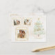 Fun y caprichoso saludo de vacaciones con tres marcos de fotos cuadradas de doodle dibujados en línea dorada, árbol de navidad de acuarela con oro personalizado.