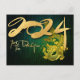 Papel "Golden" Dragon cortado con gran tamaño 2024 (escritura original) + "Year of the Dragon" (escritura original) en un fondo verde para 2024. Diseño de postales de vacaciones horizontales con el mismo fondo dentro de la tarjeta (tonos pastel). Coincidiendo con tarjetas de felicitación, productos artesanales y más pronto... Perfecto para el Año Nuevo Chino del Dragón o Cumpleaños (personas nacidas en el Año Dragón).