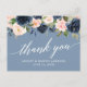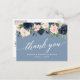 Moderna y elegante escritura caligráfica, acuarela Dusty Blue Pink Floral Boda Gracias Postcard