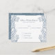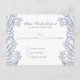 Nuestras hermosas postales de respuesta de invitación a bodas botánicas vintage RSVP son magníficas en azul polvoriento claro. Un bonito tono mullido perfecto para un boda moderno y sofisticado con un toque antiguo. Personalizar el texto de esta invitación para hacerlo propio.