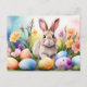Postal Festiva Easter Bunny with Spring Flowers, Painted Eggs