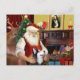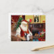 Santa en casa con su Husky Siberiano, relajándose frente a una acogedora chimenea antes de la gran noche. (Noten a Mona Lisa sobre el mantel.)