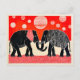 elefantes abstractos en negro sobre un fondo rojo iluminado por la luna. La superficie dentada y el simbolismo geométrico crean una escena surrealista.