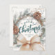Elegant Merry Christmas Script Botanical Wreath Holiday Postcard