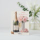 Botella de vino con cuello de Relieve metalizado dorado y un sello elegante, junto a una copa de flauta alta rellena de champán espumoso. La botella se complementa con un jarrón de rosas suaves y rosas en flor, que aporta un toque romántico y sofisticado. En la mesa hay un corcho que hace hincapié en la celebración y la elegancia. La composición irradia calidez y un ambiente festivo con tonos pastel y estética de alta categoría. Tienda de diseño de cade ©