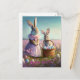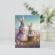 Postal Festiva Elegante conejito de Pascua vestido rosa conejo de