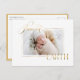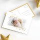 Eleve su saludo de vacaciones con este diseño minimalista y elegante que presenta un borde de gradiente dorado que rodea su preciada foto familiar. También muestra un mensaje atemporal de "Paz en la Tierra" en la tipografía de los personalizados de oro. La parte posterior presenta campos de texto editables y color de fondo de personalizable.