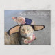 Postal Festiva ELEGANTE GATO CON GRAN GORRA DIVA, ROSES PINK Vale