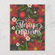 Postal Festiva Elegante guión moderno con flores de poinsettia ro