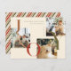 Una tarjeta de Navidades minimalista y elegante con tres hermosas fotos familiares con una tipografía que dice "JOY" y un fondo de rayas de boho en la parte trasera.