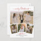 Nuestra magnífica tarjeta fotográfica de vacaciones es la elección perfecta para todo aquel que busque una elegante tarjeta de vacaciones con fotos personalizadas para desear feliz Navidad a su ser querido. Moda y elegancia, el diseño presenta un collage de 4 fotos personalizadas dentro de un marco blanco delgado, elegante y minimalista. El texto de bienvenida, encima de las fotos, está en un elegante guión rojo. Al final están tu nombre y el año en curso. Presione el botón "personalizar" para reemplazar la plantilla con sus propias fotos e información para hacer que esta tarjeta sea verdaderamente única. ¡Estarás encantado!