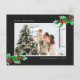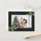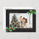 Elegantes postales personalizados de Navidades de fotografía negros con un marco de foto negro adornado con una pintura acuarela de bayas y azulejos. Personaliza fácilmente esta postal negra de Feliz Navidad con tu imagen y texto. También puede cambiar el fondo y la fuente a cualquier color, por ejemplo.
