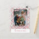 Esta postal de bienvenida vacacional destaca por su diseño elegante y único. Presenta un saludo atemporal "Happy Holidays", personalizable a tu preferencia, en un diseño de motivos rojo oscuro, rosa y verde plateado. La parte delantera ofrece espacio para tu nombre familiar, foto y un saludo estacional personalizado, mientras que la parte trasera es perfecta para añadir un mensaje o poema estacional personalizado. Es una forma elegante de enviar sus deseos de vacaciones.
