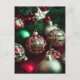 Postal Festiva Elegantes bolas victorianas de Navidades rojos ver
