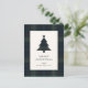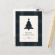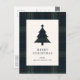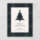 Postales de Navidades modernos con un diseño atemporal con un árbol de Navidad con un suave patrón azul marino y manta verde junto con el saludo, "Feliz Navidad". Utilice la plantilla para agregar su mensaje personalizado.