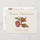 Tarjeta de correo de Navidades de Personalizable floral de época, sencilla y elegante. Diseño botánico vintage del viejo mundo con escritura rojo burdeos y verde cazador. Esta hermosa tarjeta de postales de Navidades/feriados cuenta con hermosas flores botánicas vintage sobre un fondo cremoso. Personalice fácilmente.
