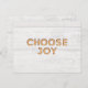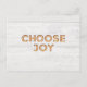Las letras de luz de marquesina resaltan el mensaje positivo "Elegir alegría" en esta postal. Con su sencillo fondo rústico de madera, este mensaje de estilo retro es un gran recordatorio para evitar la negatividad y en cambio centrarse en las cosas buenas que te dan alegría. Envíe pensamientos felices a alguien que pudiera usar un poco de ánimo con esta postal.