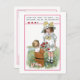Un chico de la época que le da rosas rojas a una niñita con trapo blanco y gorra con mensaje de San Valentín.