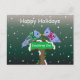 Una escena adorable en una noche de invierno con dos pequeños pájaros mojigatos encaramados en una señal. Pequeñas cintas alrededor del cuello y bayas engrasadas alrededor del poste.