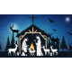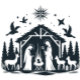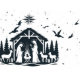Se despliega una escena de natividad serena, con María y José junto a un pesebre brillante. Silhoueteado contra una noche estrellada, una estrella radiante brilla por encima. A su alrededor hay animales suaves, entre ellos ciervos y ovejas, que aportan un ambiente tranquilo.