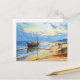 Postal Festiva Escena de pescadores en la playa del Mar Báltico c