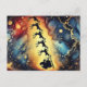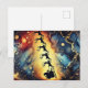 Postal Festiva Escena de Santa en el cielo nocturno con renos Tar