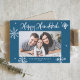 ¡Feliz Hanukkah! Envíe cálidos deseos a la familia y a un amigo con esta fantástica postal de Hanukkah. Cuenta con copos de nieve extravagantes y caligrafía moderna. Personalice esta foto con la postal de Hanukkah añadiendo sus propios detalles. Esta postal de Hanukkah con copos de nieve está disponible en otros colores y cartón.
