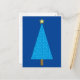 Postcard con una visión simplificada y moderna sobre un tema clásico del árbol de Navidad, azul ceruleño, satinado texturizado en aqua con fondo cobalto azul