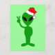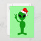 Extranjero divertido con el gorra de Papá Noel que destella el signo de la paz. Camisetas del navidad, camisetas, botones y regalos extranjeros hilarantes del navidad para la familia y los amigos. ¡Regalos extranjeros chistosos para los creyentes extraterrestres!