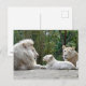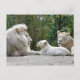 Postal Festiva Familia de leones blancos tendidos en el suelo