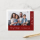 Postal Festiva Family Photo Merry and Bright Modern Christmas Red