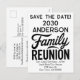 This family reunion save the date features a clean, modern black and white layout with bold typography for a sophisticated yet approachable look. The clear, organized design ensures all essential information—including name, date, and location—is easy to read for relatives of all age