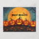 Postal Festiva Felices calabazas de Halloween en plena luna