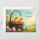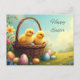 Postal Festiva Felices chichas amarillas de Pascua en una cesta d