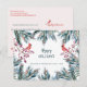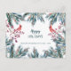 Tarjeta de felicitación de vacaciones de invierno de estilo rústico moderno con ramas de pino de acuarela en azul marino, verde cazador y bayas de acebo, y dos pájaros cardenales rojos junto con tipografía verde editable "Felices Fiestas". Fácil de personalizar con sus deseos, nombre, texto, dirección del remitente y firma en ambos lados. +++++++++++ Una forma sencilla de enviar sus felicitaciones de Navidad a familiares o socios comerciales corporativos. ++++++++++ La tarjeta tiene un color rosa suave en el reverso.