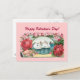 Postales El día de San Valentín personalizados con un par de hermosos cisnes blancos flotando en un lago enmarcado por rosas rojas y olores rosados. Haga clic en Personalizar para añadir su propio saludo personal a ambos lados.