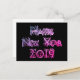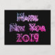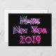 Feliz año nuevo 2019 Elegante tipografía de estrellas negras, rosadas y púrpuras Tarjeta postal de año nuevo de la temporada navideña