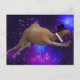 camello divertido saltando a la noche de los años nuevos a través de los coloridos fuegos artificiales