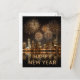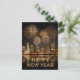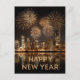 Postal Festiva "Feliz Año Nuevo" con fuegos artificiales en una c