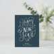 Feliz Año Nuevo Blue Script Modern No Photo Holiday Postcard. Envíe saludos de vacaciones a sus seres queridos con esta tarjeta festiva y moderna. Todos los textos están preorganizados para que puedas personalizarlos fácil y rápidamente con tus propios detalles. Felices fiestas!