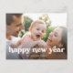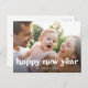 Esta es una tarjeta postal minimalista de Año Nuevo que presenta una hermosa foto simple combinada con “Feliz Año Nuevo” en una fuente moderna audaz y retro inspirada de moda.