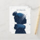 Esta es una postal de año nuevo muy linda que tiene una silueta azul de un niño que usa ropa de invierno y beanie con copos de nieve. Puede personalizar el mensaje.