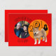 Tarjeta postal original y divertida para el Año Nuevo Chino del Perro con marco de foto rojo y nombre. Puede cambiar fácilmente el texto (fuente, color, tamaño y posición) haciendo clic en el botón personalizar.