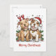 Ilustracion de Bulldoges de foso vestidos para Navidades. Perfecto para los amantes de las mascotas o los padres de perros durante las vacaciones.