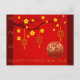 Ilustracion estilizado con flores de "albaricoque" amarillas, farolillos asiáticos de fondo rojo. Diseño de postales de vacaciones horizontales con año personalizado 2022 y "AÑO NUEVO CHINO FELIZ" en amarillo + un pequeño "dorado" de papel de conejo (imagen impresa) en la esquina. Puede cambiar fácilmente el texto (color de fuente, tamaño y posición) + borrar el ilustracion Tiger si lo desea haciendo clic en el botón personalizar. Tarjeta de saludo coincidente. Perfecto para el Año Nuevo Chino del Conejo 2023.