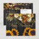 Flores de otoño de tendencia rústica con hojas y follaje secos, ramos de girasoles, leña de grano y luces de cuerdas y una falsa tipografía de oro de moda postal para enviar tu deseo de Acción de Gracias a tus seres queridos. +++++++++++++++ Personaliza tu texto y firma!
