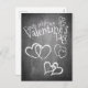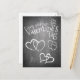 Valentinsgrüße im Kreidetafel Stil mit Herz und handschriftlichen Grüßen im Kreidelook auf der Vorderseite der Karte. Restliche Flächen stehen zur freien Verfügung.